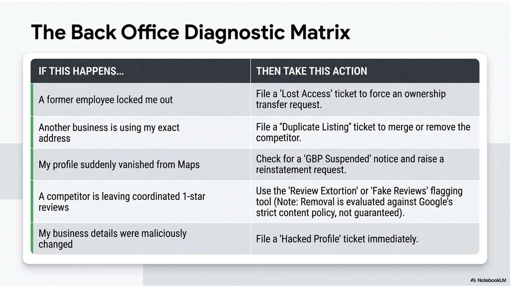 | Lost access to your listing login | File a ticket with Google |